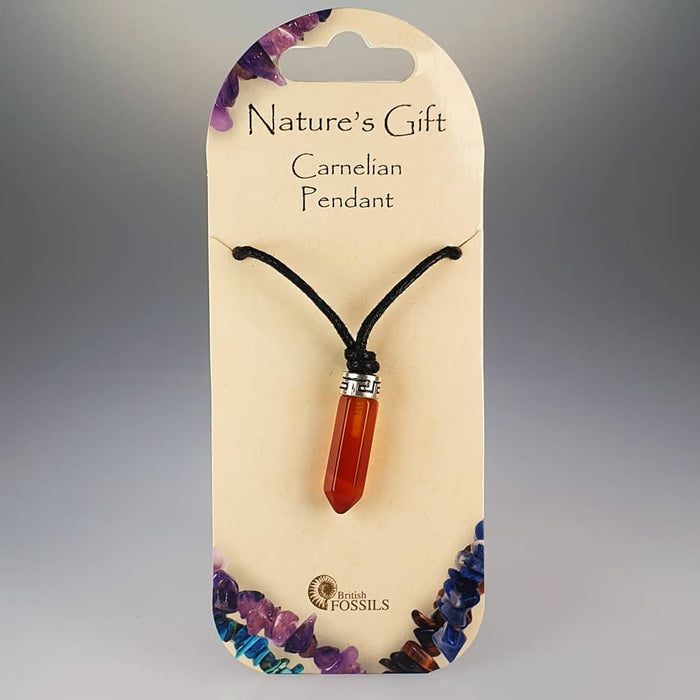 The necklace is presented on a hanging card with a little note about the stone type printed on the back;
